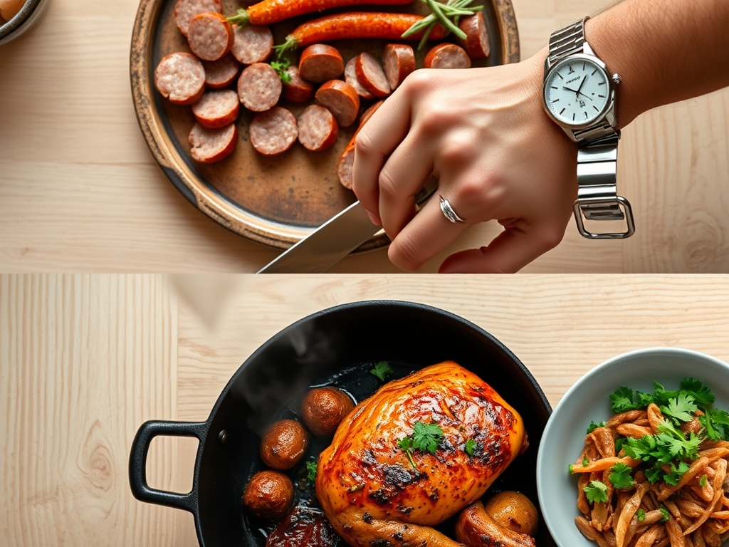 To execute these andouille sausage and chicken recipes with precision, your mise-en-place must be impeccable. We start with the andouille. Look for links that feel firm; this indicates a high density of lean meat to fat, ensuring it will render beautifully without disintegrating. For the chicken, I prefer boneless, skinless thighs. They possess more connective tissue than breasts, which breaks down into gelatin during the cooking process, providing a superior mouthfeel and moisture retention.