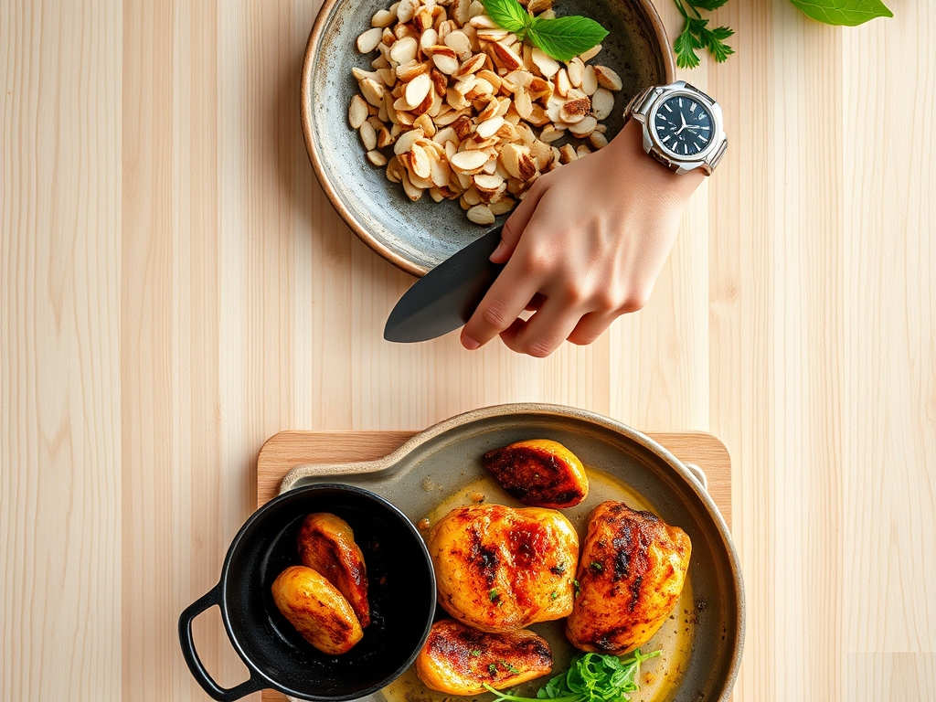 Efficiency in the kitchen is about the Chef's Flow. This is the rhythmic sequence of tasks that prevents bottlenecks. Total prep time for these almond chicken recipes is typically 20 minutes, with a cook time of 15 minutes.