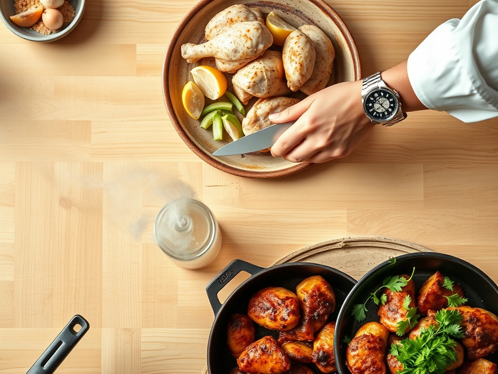 For your dry rub, gather kosher salt (the jagged crystals adhere better than table salt), smoked paprika for that piquant depth, garlic powder, and dried oregano. Use a microplane to zest a fresh lemon into your spice blend to add bright, volatile oils.